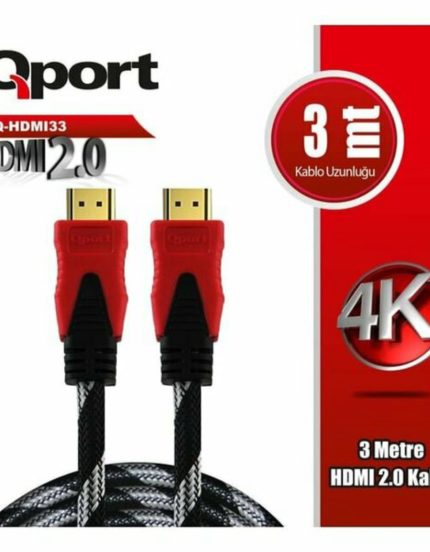QPORT 3M 2.0V 4K 60HZ ALTIN UÇLU ÖRGÜLÜ HDMI KABLO (Q-HDMI33)