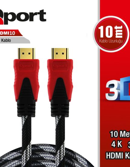 QPORT 10M ALTIN UÇLU HDMI KABLO 1.4V (Q-HDMI10)