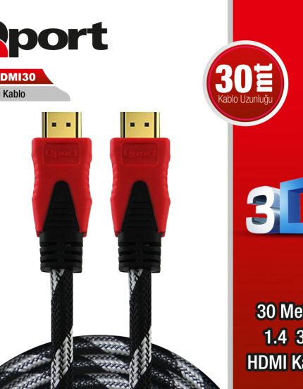 QPORT 30M ALTIN UÇLU HDMI KABLO 1.4V (Q-HDMI30)