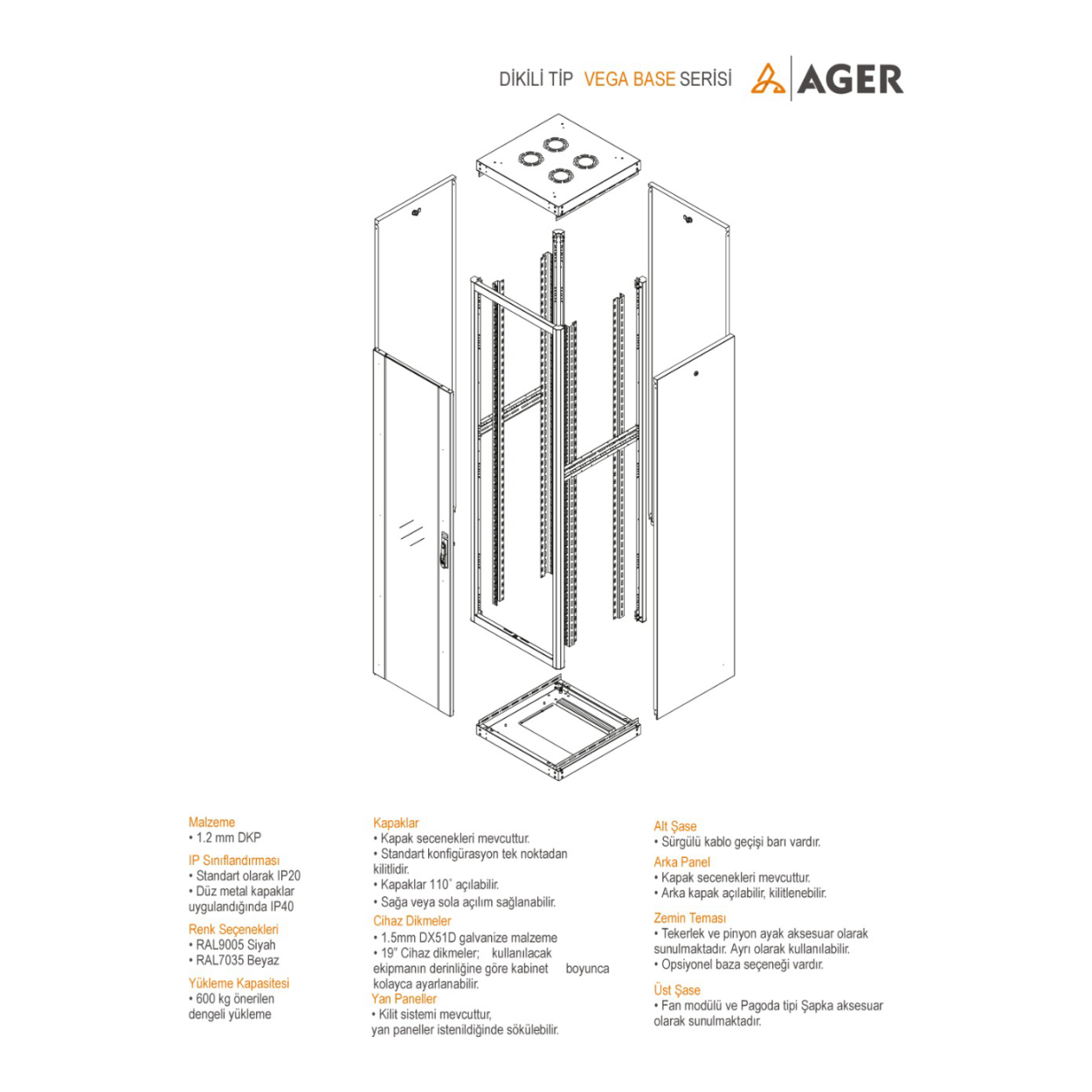 AGER Vega Base 16U W=600mm D=600mm 19” Dikili Tip Kabinet